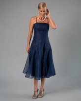 Pure Silk Tea Length DressThe Pure Silk Tea Length Dress is sewn in 16 panels of pure soft silk and 16 panels of pure silk organza, all French seamed. The Tea Length Dress is extremely flattering and perfect for any cocktail or more formal event, including as the...