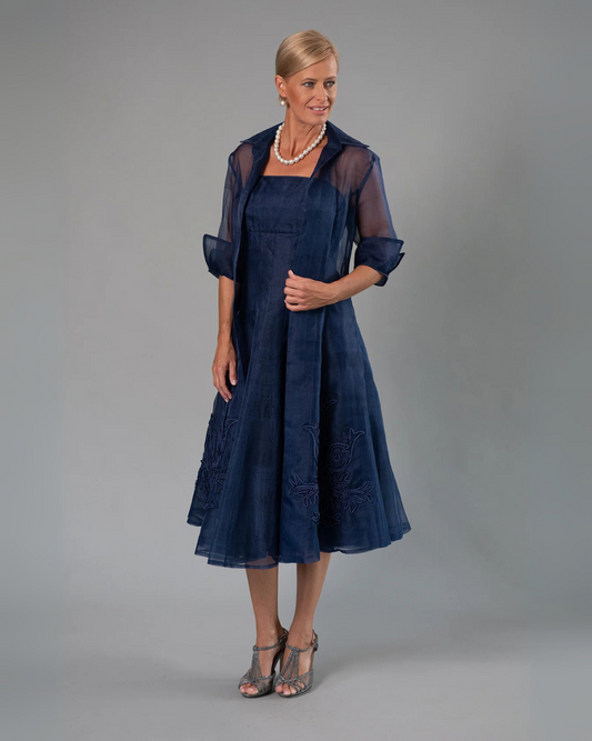 Eloise DressA truly exceptional tea length dress - the Eloise Dress. Eloise features the always flattering boat neckline, with a laser cut overlay and silk organza skirt detail. Shown here with the Gold Pure Silk Organza Coat - Plain over the top for a little...