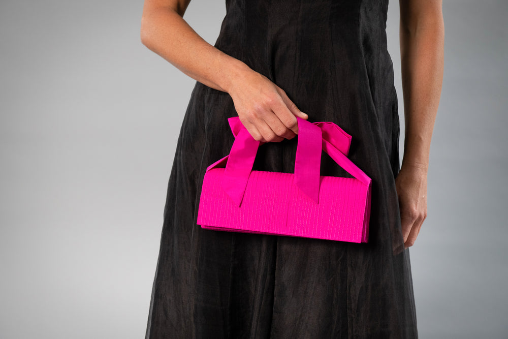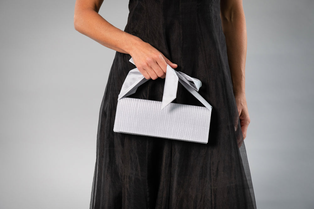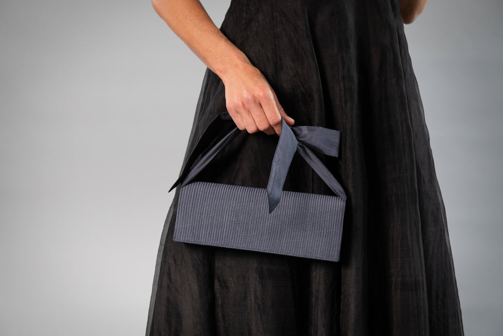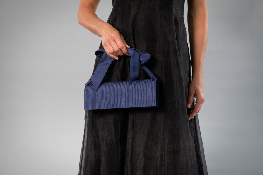 The pure silk pin tuck clutch is the perfect finishing touch to your outfit.  The ribbon handle can be tied or removed, as you wish.
